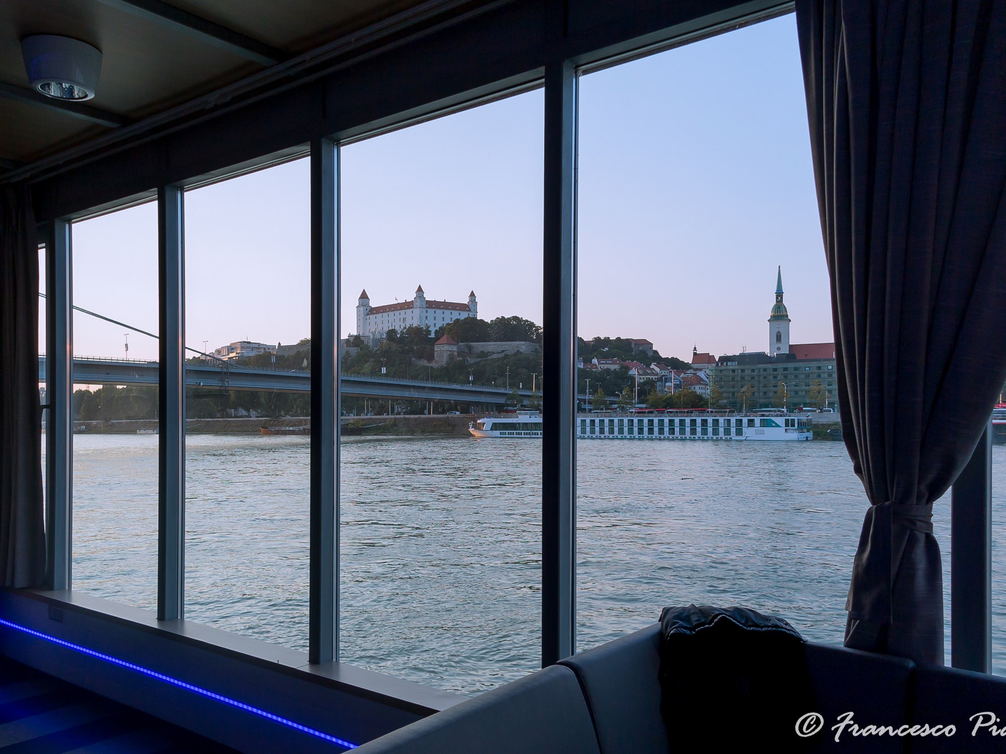 La visita al centro prima della cena sociale è stata meravigliosa, abbiamo girato per le vie a bordo di due autobus storici con le guide che descrivevano al volo i palazzi di interesse turistico ma anche no. Ad un certo punto la nostra guida ha cominciato a descrivere anche le scuole pubbliche e i centri commerciali, stupore a parte ho apprezzato la professionalità. Per la prima volta ho potuto vedere il Bratislavský hrad durante il periodo estivo. I colori della città ed il Danubbio non sono mai stati così vivi. Anche la cena sociale mi ha dato grandi soddisfazioni, la barca ormeggiata sul fiume i cibi e la musica tradizionale sono stati il giusto coronamento alle mie fatiche.