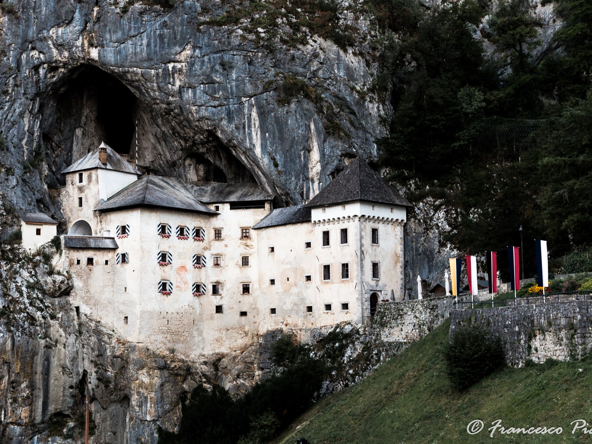 Un’estate, portai i miei genitori a visitare Castel Lueghi, arrivammo nel tardo pomeriggio, percorrendo in macchina le curve e i tornanti che congiungono Postumia al comune di Predjama. Il castello era già chiuso ma l’atmosfera attorno valse il viaggio. Chiusa fra basse ma irte colline, Predjama vive un precoce crepuscolo che si protrae per una durata quasi innaturale. Anche le temperature estive lasciano spazio ad un’aria fredda e tersa, quasi alpina. Abbandonata dei turisti appare quieta e vuota. a tradire la presenza umana rimangono solo lo spignattare delle cucine dei ristoranti e gli odori di carni alla griglia e sughi e pani appena sfornati.